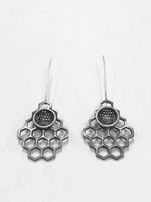 These earrings are from my memory of the well in my childhood. I remember when I was very little there was always one house every block which provided clean and drinkable water form the well at their backyard to the neighbours. I can’t remember how they could guarantee the purity of the water but all my neighbours shared the water form the well and that place was a great place to catch up with people. For a child like me at that time it was such an exciting place to go for water and see some other kids. I vividly remember how cold and delicious the water was….If I think in that way the colour should be blue but I am thinking green, violet or purple.