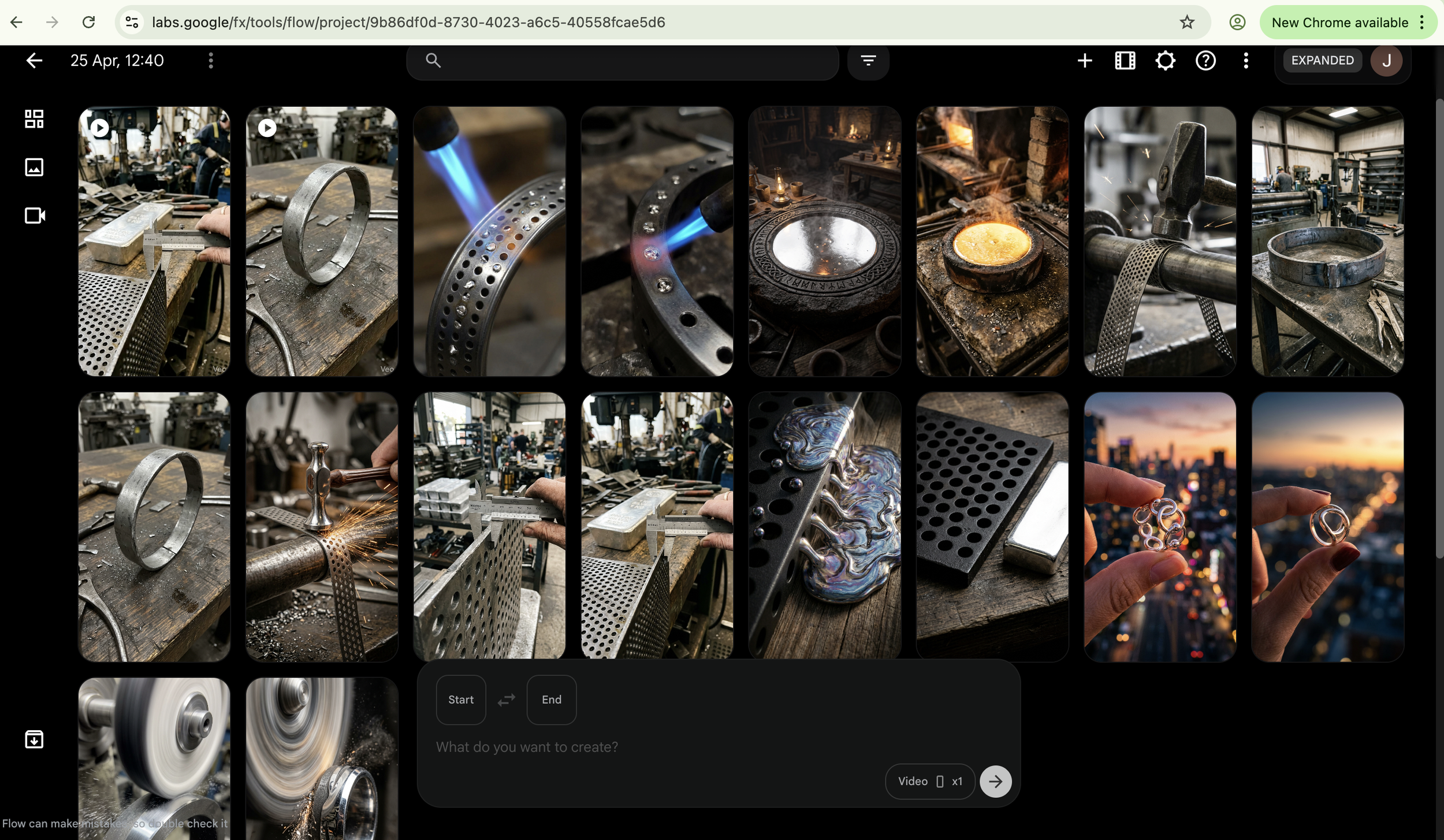 My initial prompting was done in Google AI Studio. I started by analyzing a very popular YouTube Short in the jewelry-making industry to help plan my own video. Because I had to follow all the steps quickly, the prompt I gave for creating my own Short was: "I would like to create a short that can show the process of perforating a mild steel and silver ring."Yes, it is a bit crap! But I wanted to see how well the AI could understand my rough ideas.